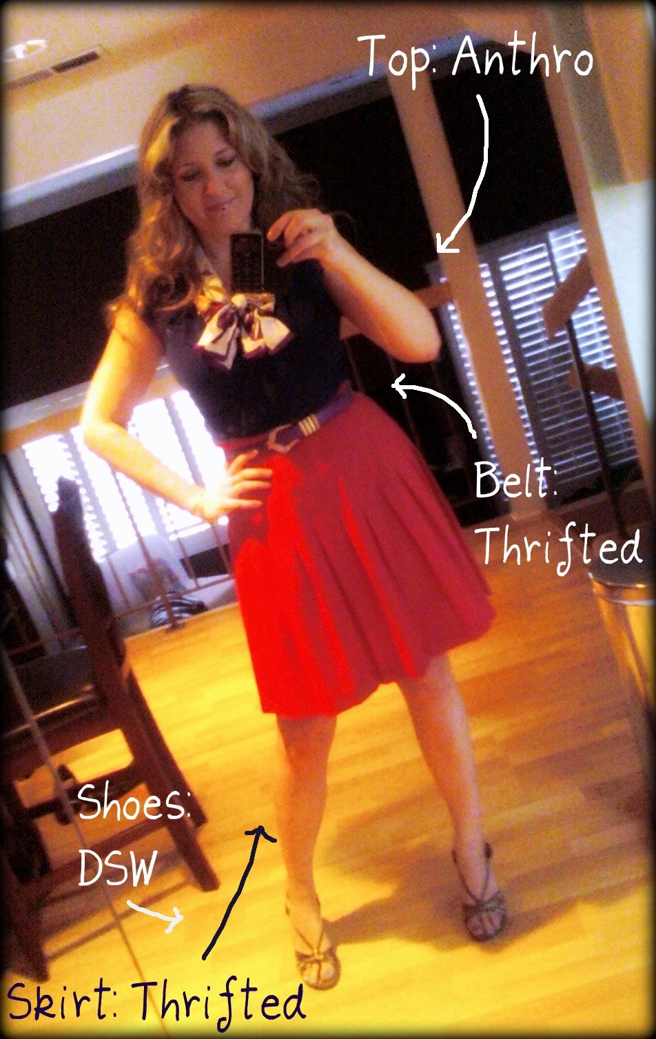 As I mentioned in a previous blog, my Grandma gave me a bunch of things she doesn't wear anymore. One of the things she asked me if I wanted was this scarf. It's GORGEOUS! And after looking at the tag, I realized..this wasn't just any scarf. It's 100% silk and it's Oscar de la Renta! "Ummm, Grandma, are you SURE you want to give this to me?" She said she has never used it and insisted I take it. She said she's had it since the 1960's! I couldn't WAIT to wear it! I put this top I bought at Anthro a few years ago with this skirt I thrifted. I felt like I needed a necklace or something. Then I thought, "Wait...I'll turn my new scarf into a necklace!" Then I just added a belt, heels and earrings and I was out the door! Of course, due to my camera being out of commission, I had to use my phone for my pictures. I apologize in advance.