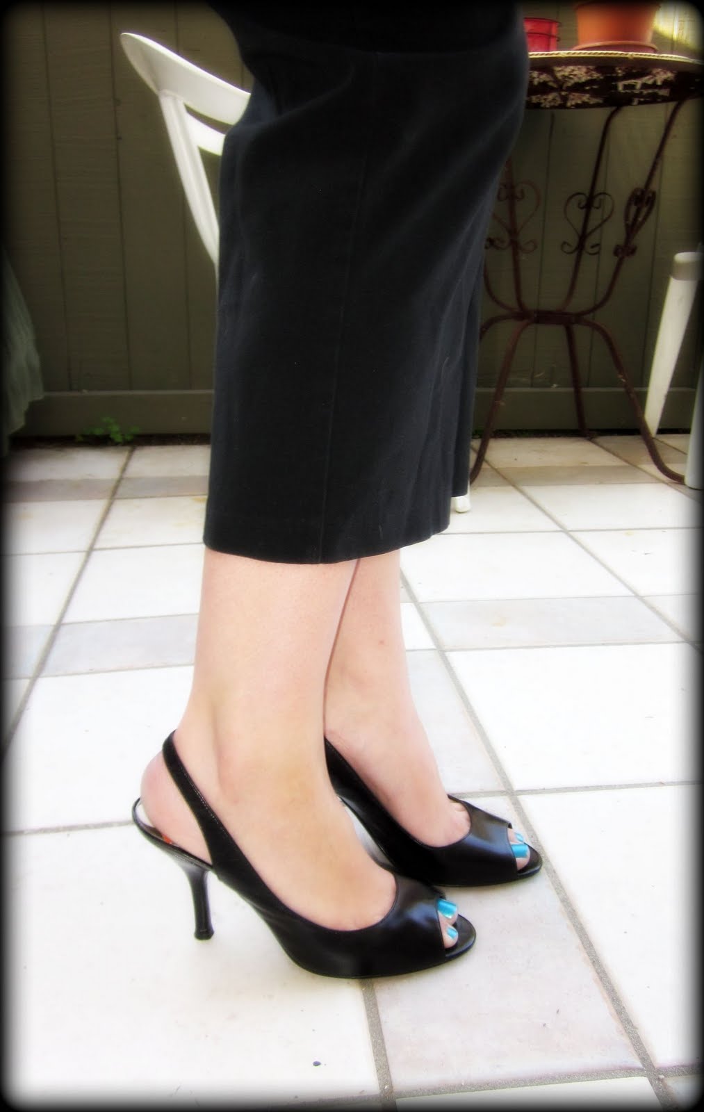 Today was going to be a bit on the cooler side, so I thought it would be a great opportunity to wear my Loft blazer that I thrifted for $5.00. The sleeves weren't as long as I'd like, so I solved that problem by rolling them up! :) Because the blazer is a neutral color, I added this vibrant purple top and necklace (both thrifted!) I really like the overall look. And I REALLY love my Nine West shoes! I got them for $4.00 and they look like they've never been touched! I feel like they look even cuter BECAUSE I paid almost nothing for them. Haha!